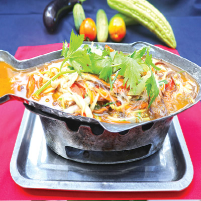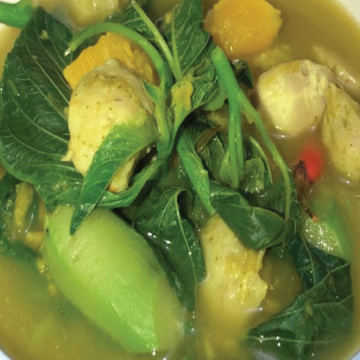 Mixed Vegetables, Roasted Rice, Coconut Milk and Khmer Spices