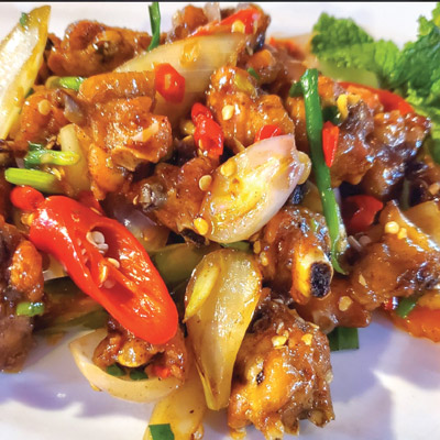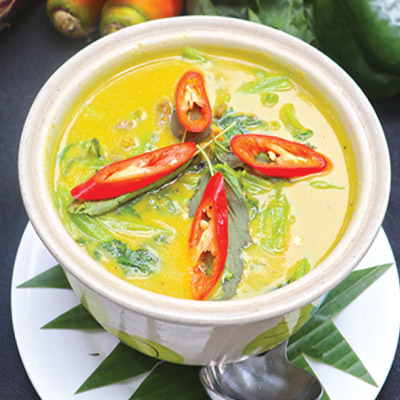 Mixed Vegetables, Roasted Rice, Coconut Milk and Khmer Spices